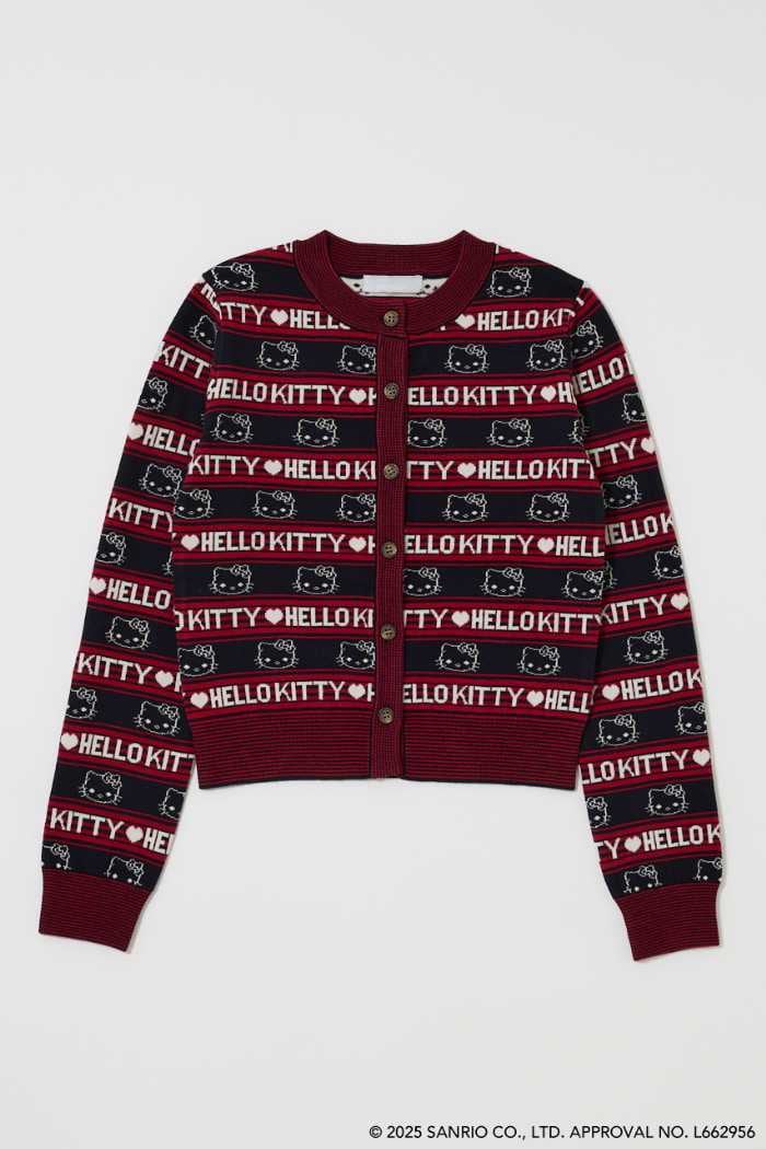 胸元に編み込まれたキティのデザインが、どこか懐かしく上品な印象を演出します。