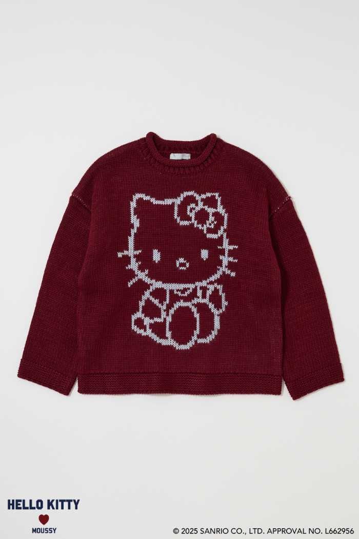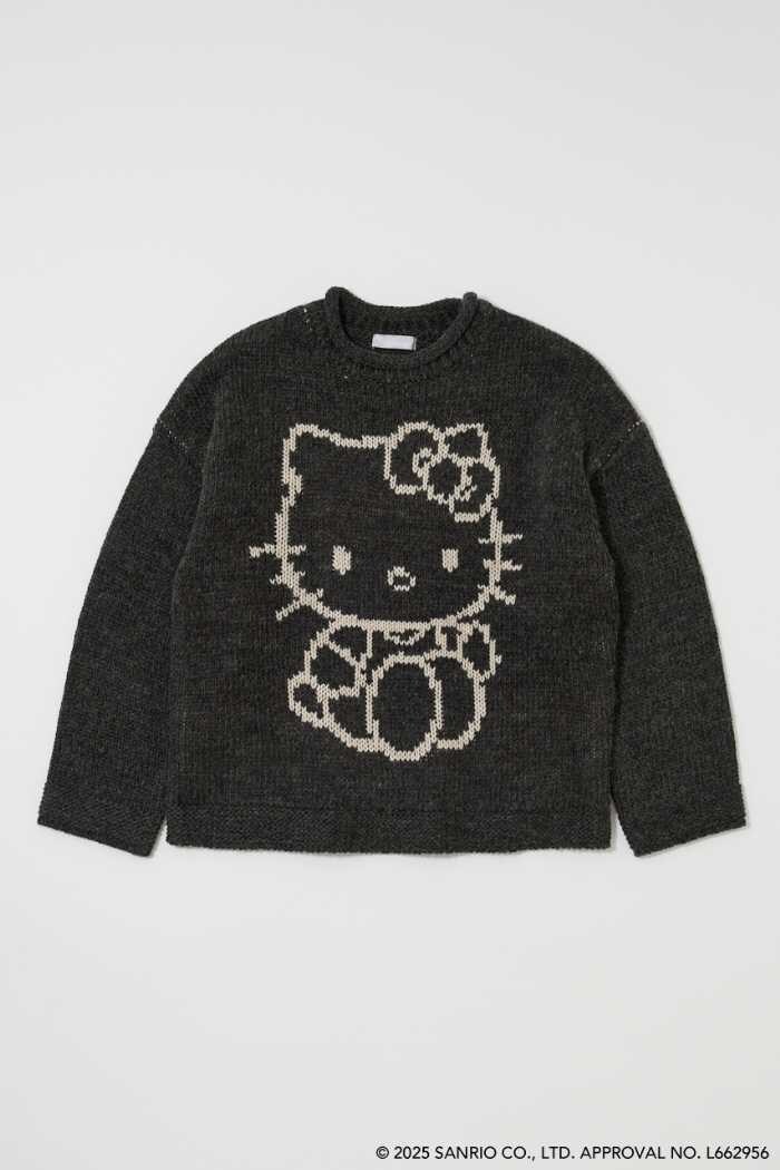 柔らかく編まれた「HELLO KITTY CHUNKY SWEATER」(¥11,000 税込)は、IVORY・BORDEAUX・LIGHT BLACKの3色展開。