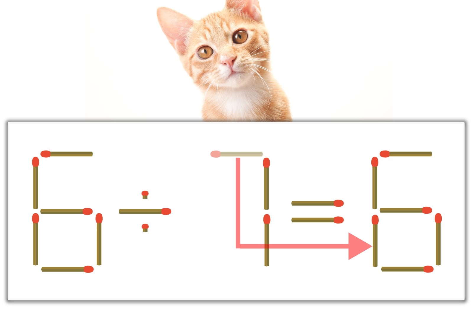 「7」のマッチ棒を1本、右にスライドさせて「6」を作り、「6÷1=6」にする。※解答は複数ある場合があります。