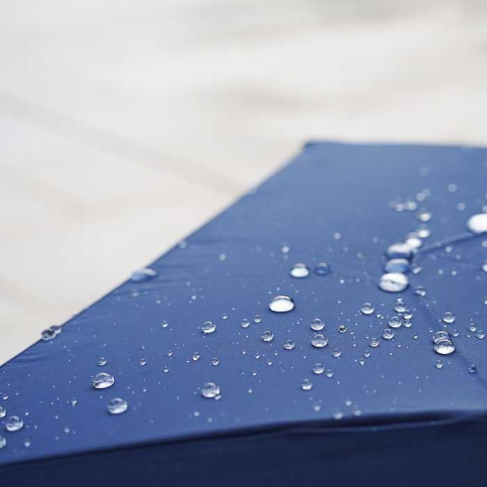 この折りたたみ傘は、ただの雨傘にとどまりません。最高ランクの撥水性「撥水度5級」を達成した超高密度ポリエステル生地で、雨をしっかり弾きます。