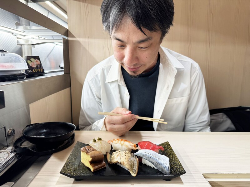 筆者らとプライベートで「くら寿司 グローバル旗艦店 銀座」(東京都中央区銀座3-2-1 マロニエゲート銀座2 7F)に出向き、さまざまな寿司やサイドメニューを食べた。