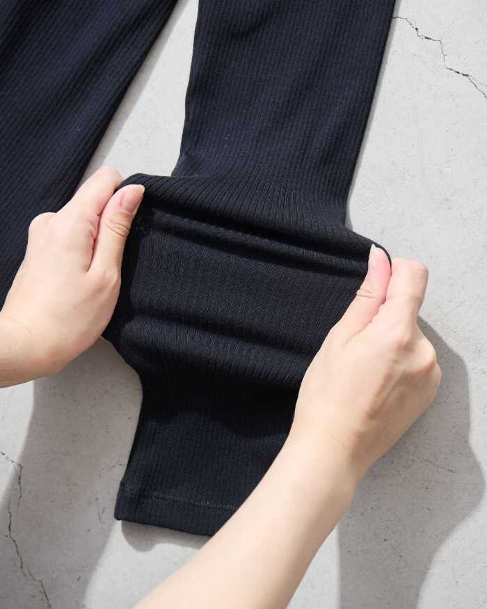 さらに、伸縮性のある細リブ素材で体型を拾いすぎず、すっきりとした印象を与えます。