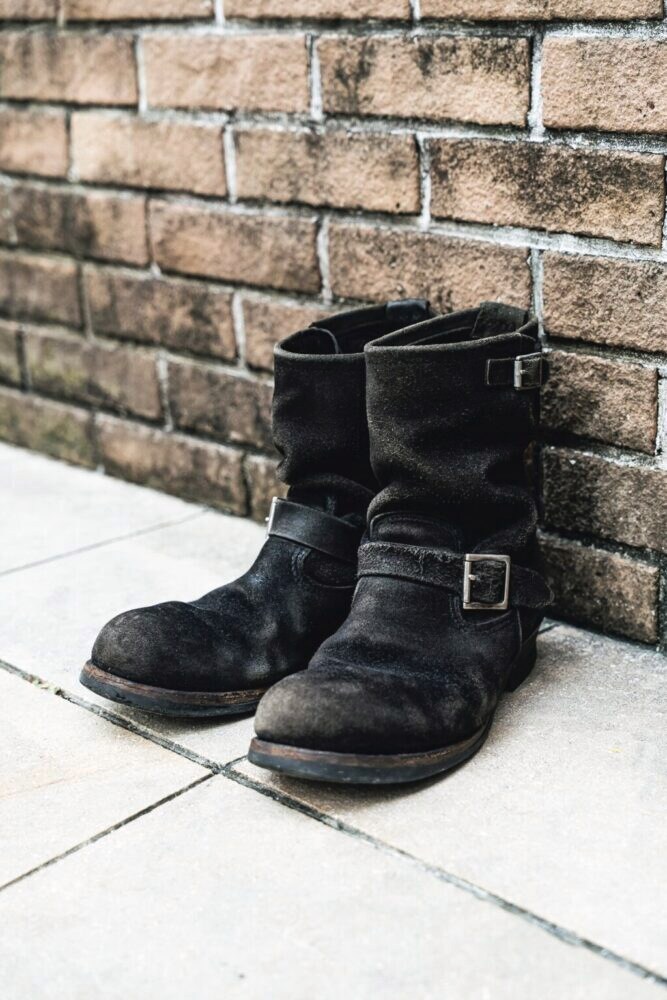 友人から譲ってもらったというBEAMS別注のブラックスウェードのエンジニア。トゥなどは茶色にエイジングされていて、なんとも良い雰囲気。「スウェードのエンジニアは合わせやすくて好き」