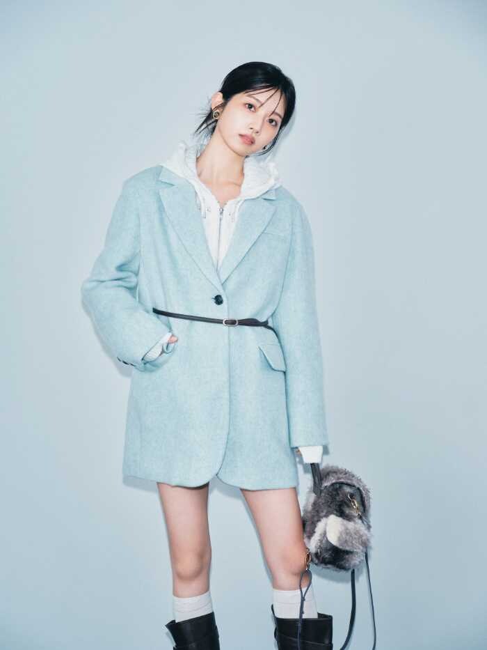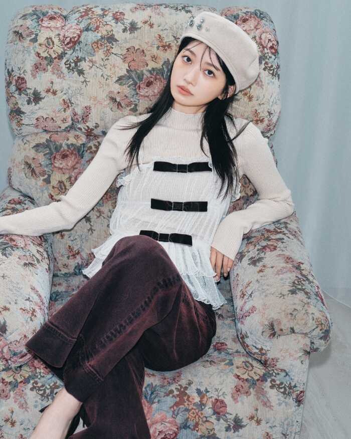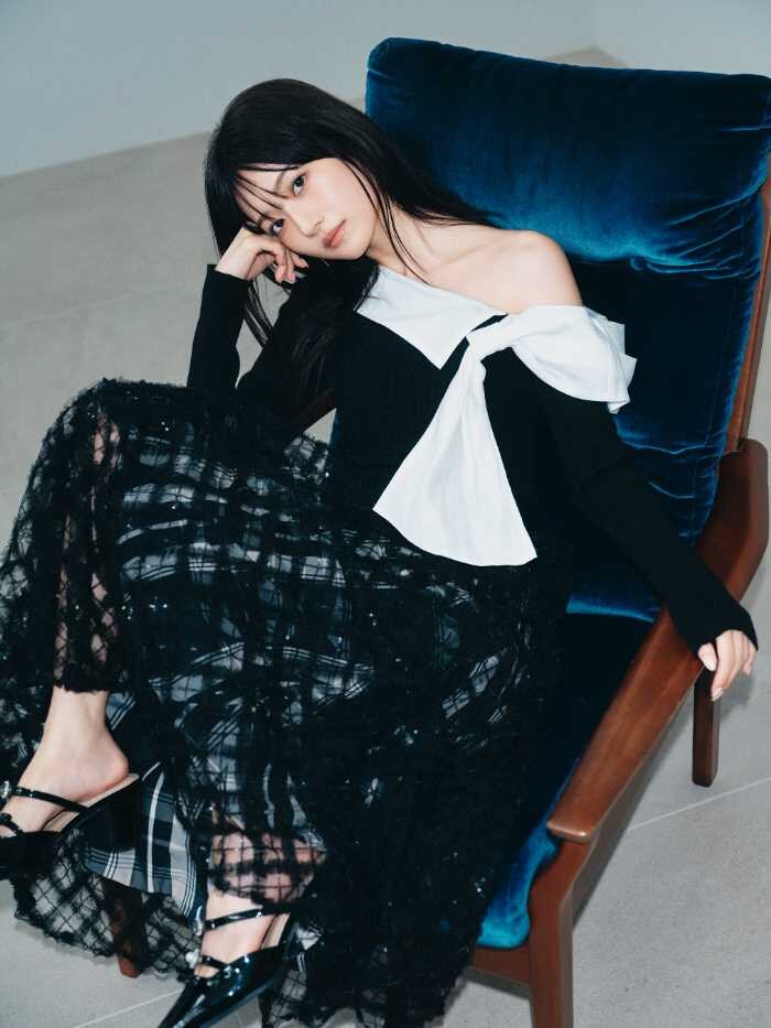 ヴィジュアルモデルの小室安未さんが纏うのは、上品なシルエットと遊び心あるカラーが共存するアイテムたち。