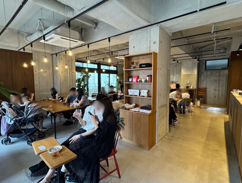 観葉植物に囲まれた、木のぬくもりを感じられる店内は、カウンター席やテーブル席が並び、ゆったりとした時間が流れています。コーヒーの香りに包まれながら心がほぐれていくような穏やかさが魅力。外にはテラス席も用意されています。