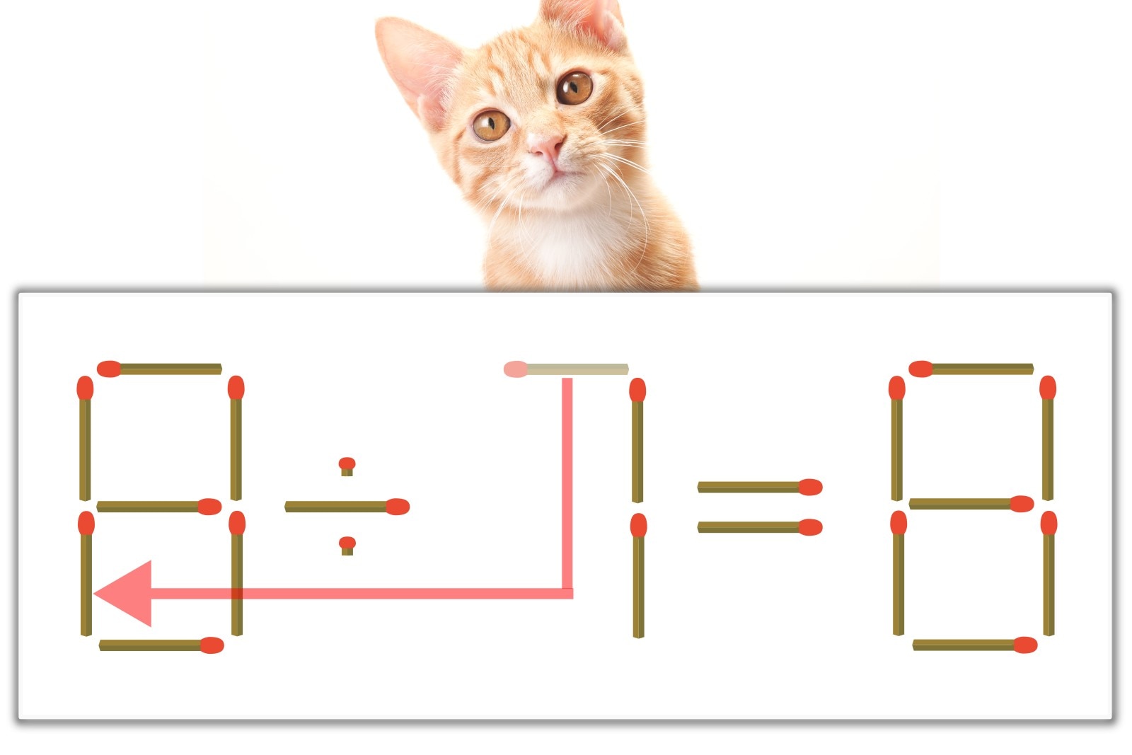「7」のマッチ棒を1本、左にスライドさせて「8」を作り、「8÷1=8」にする。※解答は複数ある場合があります。