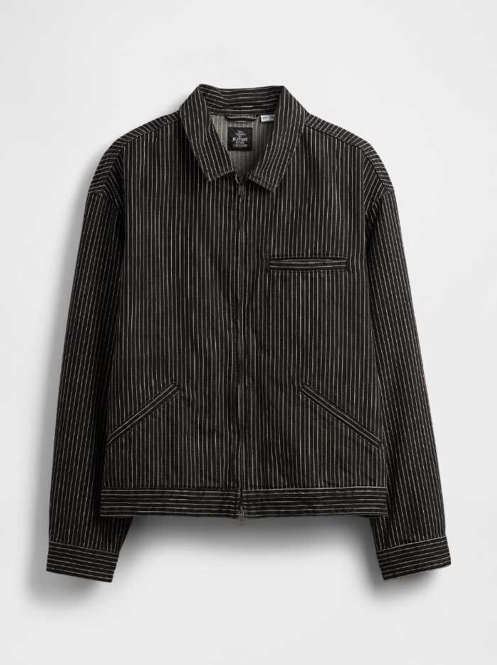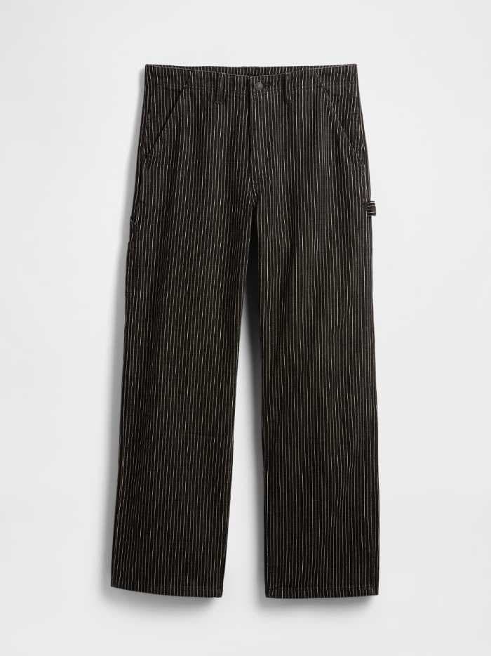 メンズラインでは、ピンストライプが特徴のデニムジャケット(12,900円)やリラックスストレートカーペンターパンツ(12,900円)が目を引く存在に。