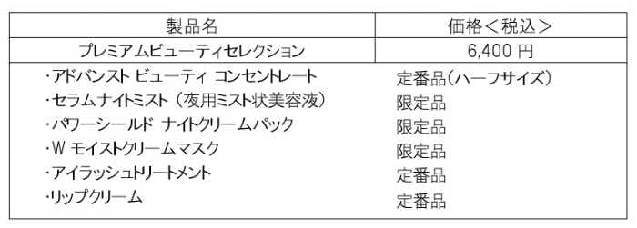 「プレミアムビューティセレクション」は、顔だけでなく唇やまつ毛までトータルにケアできるのが魅力。