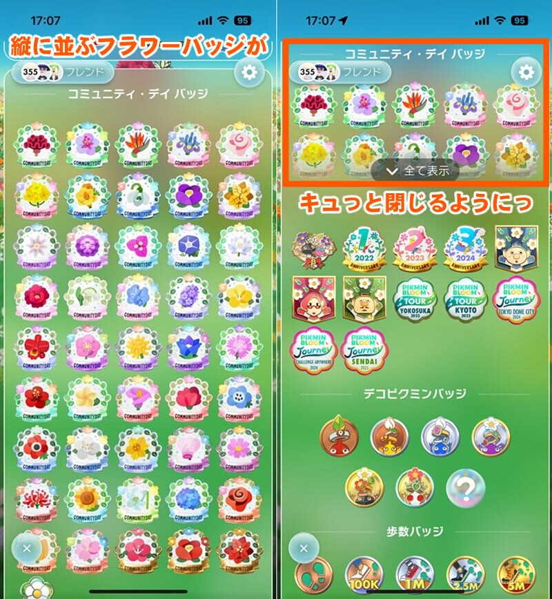 なお、この機能に伴いフラワーバッジの並びが新しいものから順(昇順から降順)に変更。