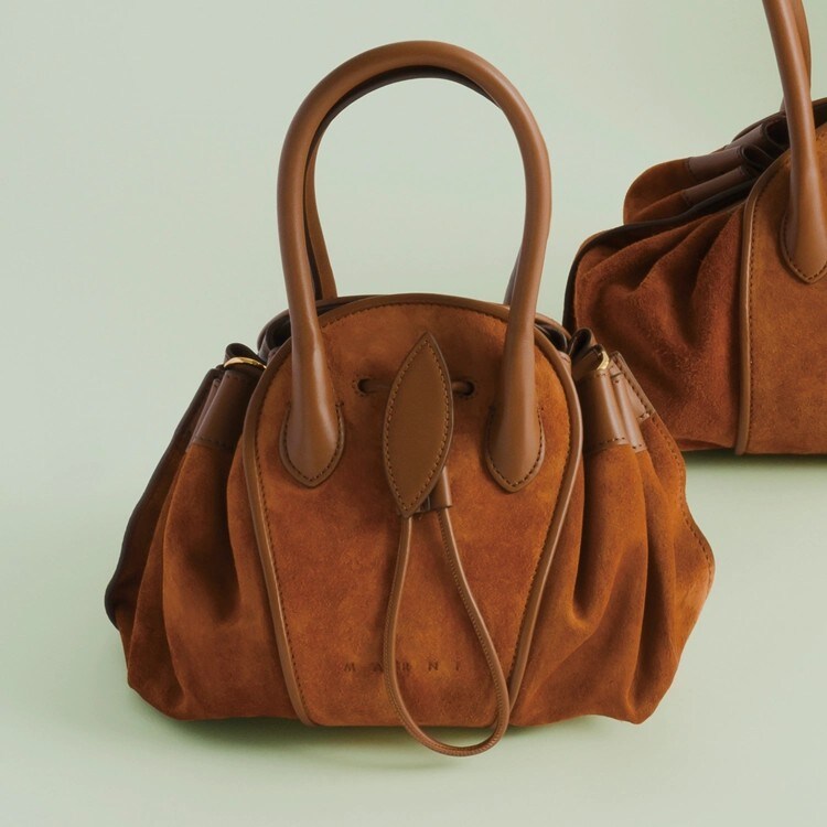 しなやかなスエード製のスモールバッグ。コンパクトなのに収納力がバツグン♡