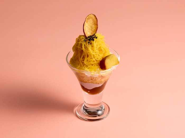 さらに、塩キャラメル&ナッツアイスやりんごのコンポートを合わせた贅沢な「おいもパフェ」(1,090円・税込1,199円)も登場。おいも本来の甘さを引き立てる工夫が光ります♡