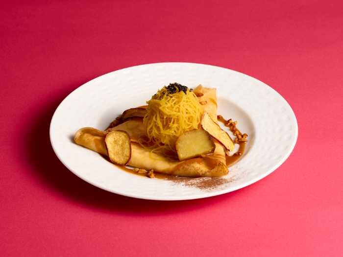 新作「おいもンブランのクレープ」(590円・税込649円)は、もちもちのクレープ生地においもペーストをたっぷり絞った一品。