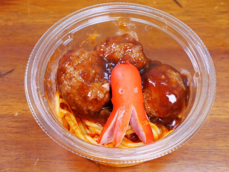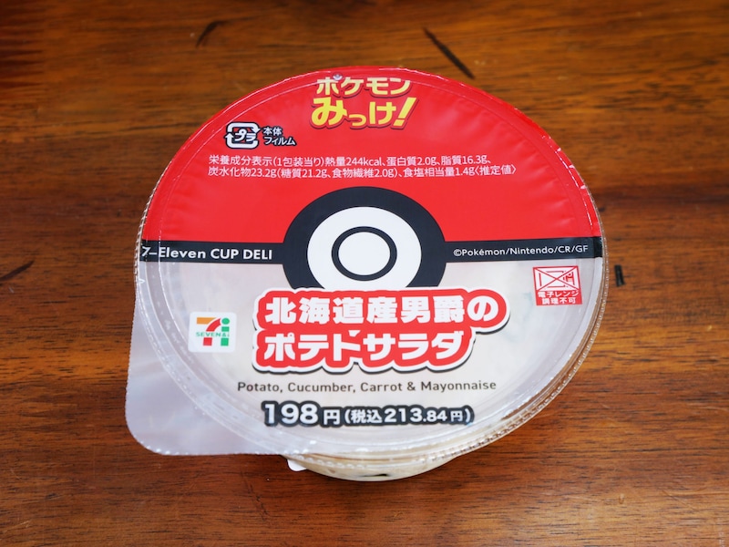 今回は「北海道産男爵のポテトサラダ」と「ミートボールとタコさんウインナー」のふたつを買いました。モンスターボールをデザインしたパッケージになっていましたよ。