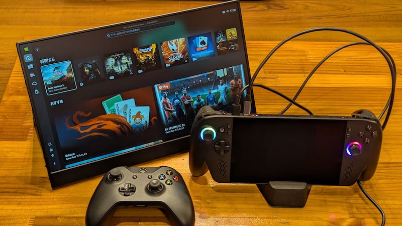 外部デバイスを接続する拡張性にも注目。2つのUSBポートで一方は給電しながらもう一方を外部ディスプレイやARグラスに接続して、大画面でのゲームプレイ環境が簡単に構築できます。