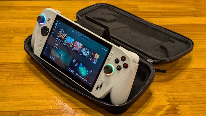 本体と同時発売のアクセサリーも触ってみました。「ROG Xbox Ally (2-in-1) Premium Case」は、スタンドとしても使える携帯用ケース。本体に付属する65WのACアダプター専用に設計された収納ポケットはケース背面で脱着可能で、収納ポケットを外して本体のみをスリムに持ち運ぶこともできます。希望小売価格は7980円(税込)。