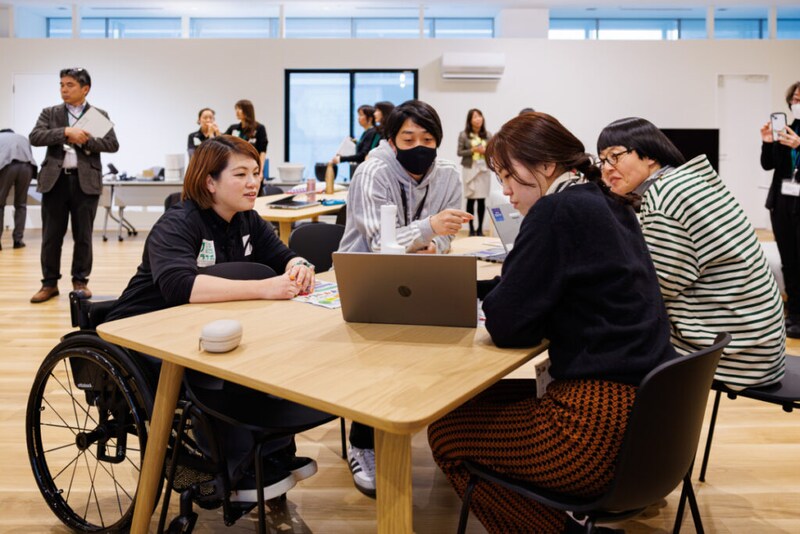 グループワークでは車いすユーザーの山本さんの意見も交え、自由闊達な意見交換が行われた「あすチャレ!Academy」の前半で、自分たちの「普通」の概念をいい意味で壊された参加者たちは、後半では4人1組に分かれてグループワークを行った。