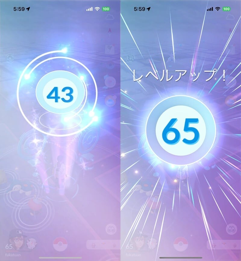 ▲いわゆるトレーナーバトルが大の苦手な筆者は長らくレベル43のまま。溜め込んでいた経験値のおかげもあってそれがいっきにレベル65に。