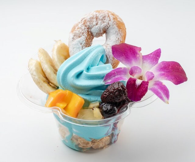 施設1階には、宿泊者以外も利用できるカフェレストラン「+Lei Kitchen」を併設。淡路牛と淡路産玉ねぎを使ったボリューム満点の「IWAYAバーガー」や、カラフルな「ブルーバニラソフト」、人気の「アサイーボウル」など、淡路の魅力を詰め込んだメニューが並びます。