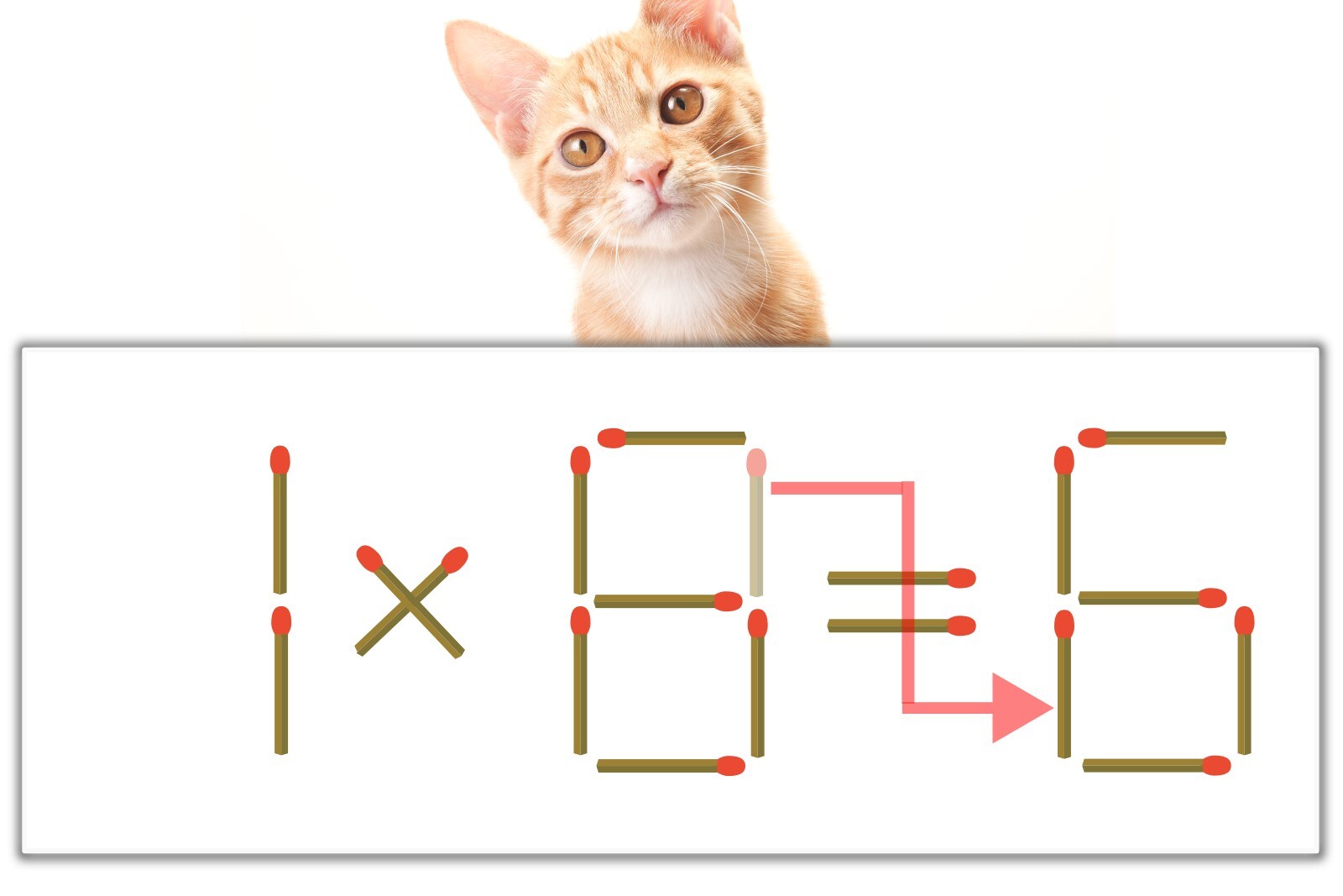 「8」のマッチ棒を1本、右にスライドさせて「6」を作り、「1×6=6」にする。※解答は複数ある場合があります。