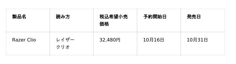 ゲーマー向けライフスタイルブランドとして世界をリードするRazer(TM)(本社:米国カリフォルニア州およびシンガポール、共同創業者兼CEO:Min-Liang Tan)は、本日、「Razer Clio」を発表しました。Razer Clioは、ヘッドセットを装着することなく、ヘッドセットに匹敵する没入型オーディオ体験を提供する革新的なゲーミングチェアアクセサリーです。2025年10月16日より予約開始いたします。販売開始は2025年10月31日(金)を予定しています。