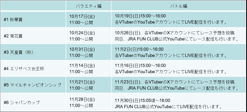 バラエティ編では予想の基礎を学び、バトル編では実際のレースで勝負——その流れを追うことで、秋競馬の盛り上がりをリアルタイムに体感できる構成です。