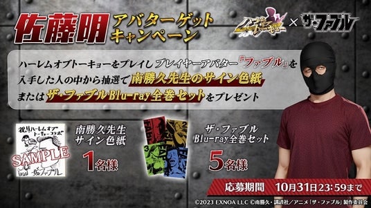 イベントで獲得できるプレイヤーアバター『ファブル』を入手した方の中から、抽選で1名様に南勝久先生のサイン色紙、抽選で5名様にTVアニメ『ザ・ファブル』のBlu-ray全巻セットが当たるキャンペーンを実施中です。