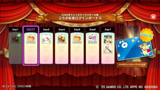 ■「2025年サンリオキャラクター大賞コラボ記念ログインボーナス」を配布!