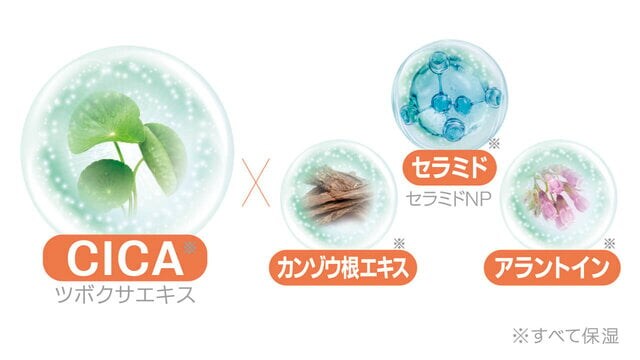 ** ツボクサエキス、カンゾウ根エキス、セラミドNP、アラントイン(すべて保湿)