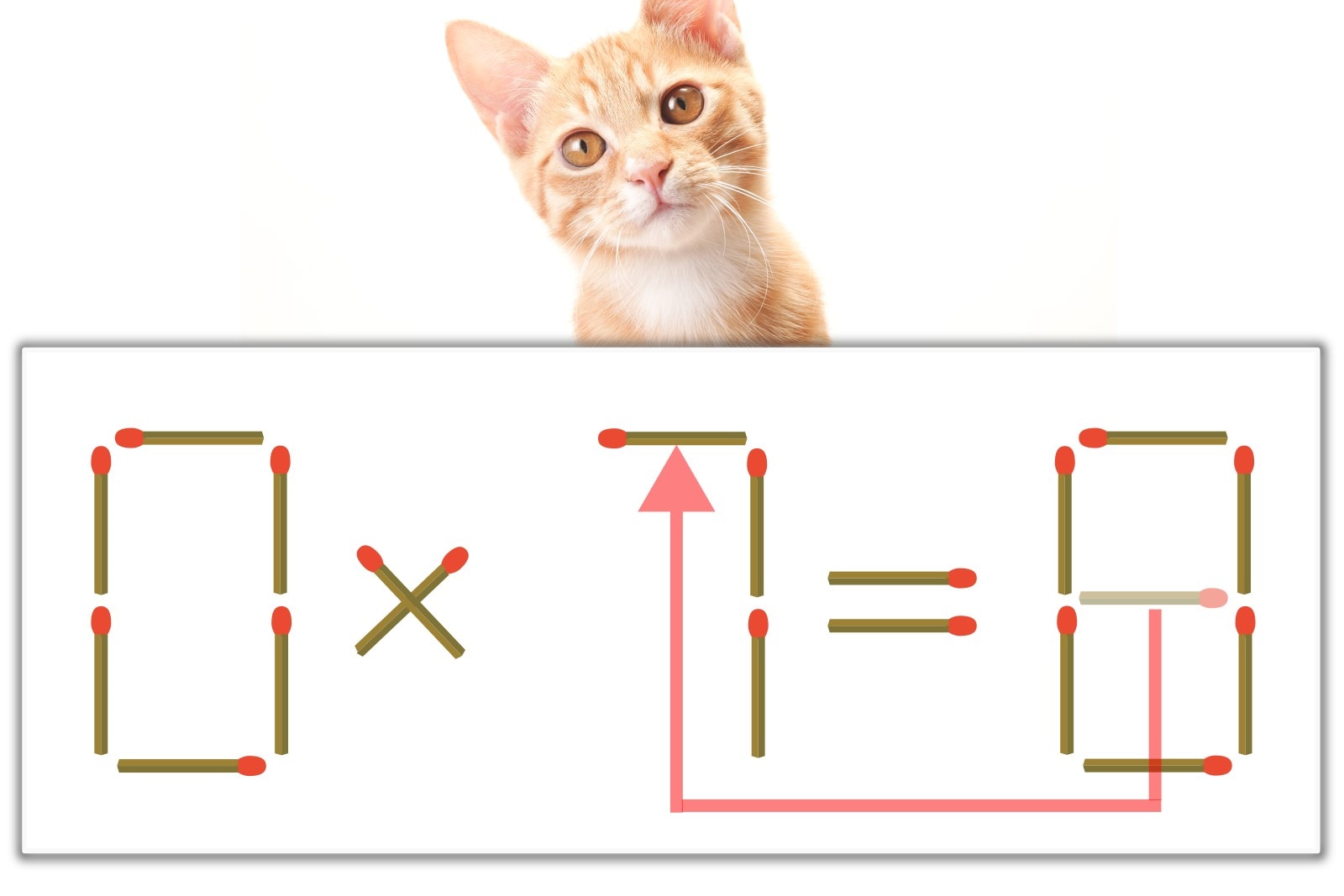 「8」のマッチ棒を1本、左にスライドさせて「7」を作り、「0×7=0」にする。※解答は複数ある場合があります。