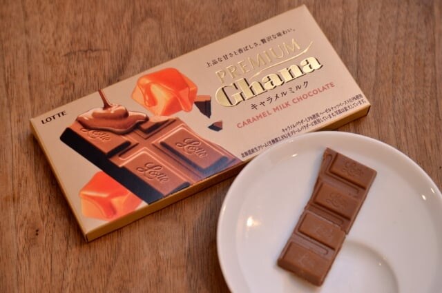 続いては、同じキャラメルフレーバーでも板チョコレートタイプの『プレミアムガーナ キャラメルミルク』(想定小売税込価格399円前後)。3年ぶりの板チョコ新商品とのことで、焦がしミルクを使用したチョコレートに、コク深いキャラメルと北海道産生クリームによるパウダーを加えた、リッチな味わいがウリです。