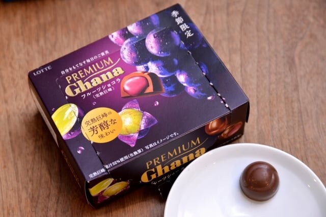 本稿ラストは、昨年のコレクションでも人気が高かったため再登場となった、『フルーツショコラ<完熟巨峰>』(想定小売税込価格432円前後)。完熟巨峰果汁を32%使用(生換算)し、さらに隠し味のワインを2種類使用することで、よりリアルな巨峰感が追求されています。