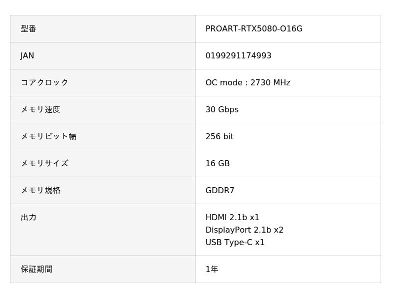 PROART-RTX5080-O16G | ASUS(エイスース) NVIDIA GeForce RTX 5080 トリプルファン搭載 オーバークロック グラフィックボード