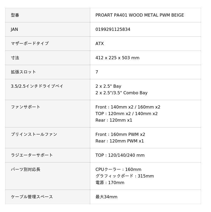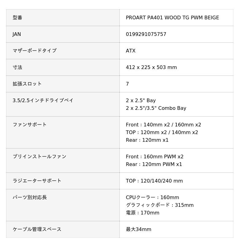 PROART PA401 WOOD METAL PWM BEIGE | ASUS (エイスース) ATXマザーボード対応 木製フロントパネル 採用 PCケース