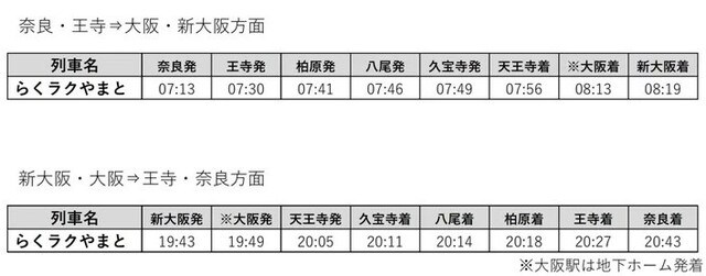2025年10月14日(火)より、特急「まほろば」の両編成を、平日のみ運行する通勤特急「らくラクやまと」に新投入。車内Wi-Fi、全席コンセント、荷物スペースを備えた車両で、通勤時間がより快適に過ごせます。