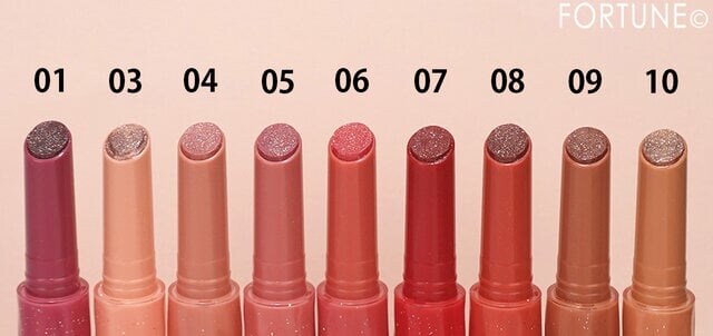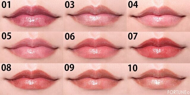 全体的にシアーな発色で、唇本来の色を透かしながらナチュラルな血色感を演出。