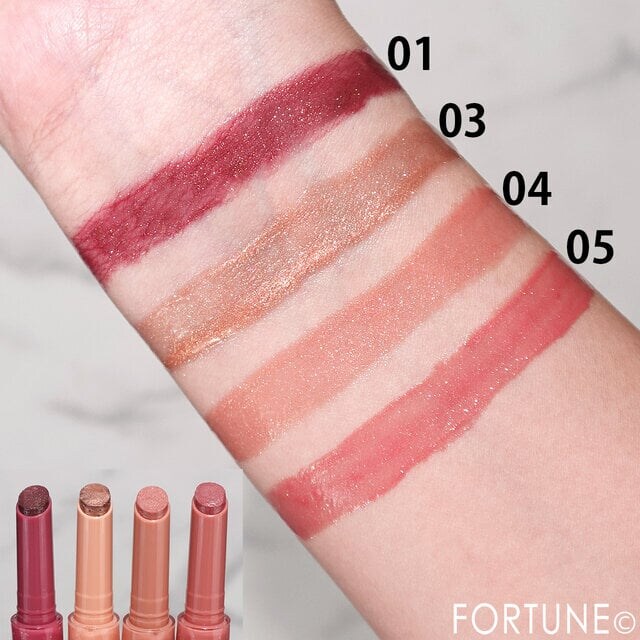 グロッシーバームが唇にピタリと密着し、ひと塗りするだけでボリューミィなぽってり唇をメイク。