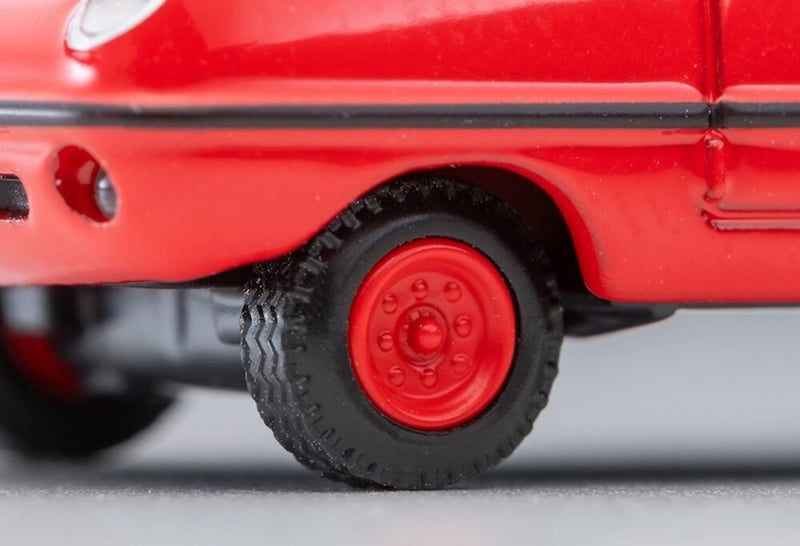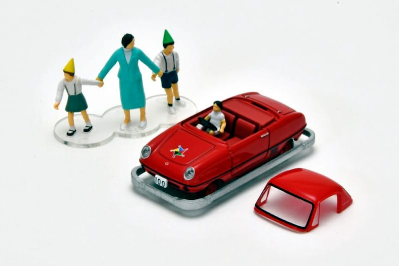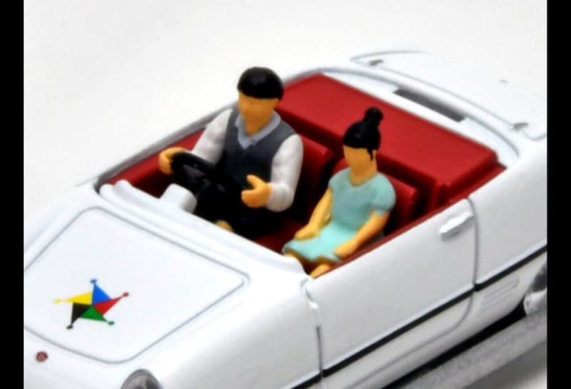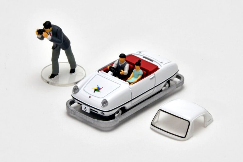 実車は赤・白・水色の3色が製作されたが、今回はまず白と赤の2色を展開。白の6号車はホイールキャップを備えた新車当時の姿を再現し、運転する子どもと、写真を撮る大人のフィギュアが付属する。赤の100号車は2014年にレストアされた後の仕様を再現し、三角帽をかぶった子どものフィギュアが付属する。