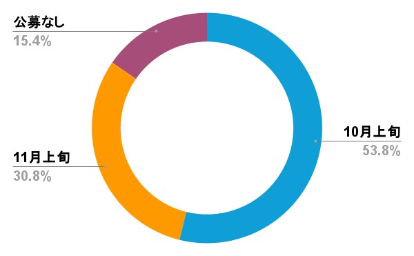 50%を超えるガイドクラブが10月上旬からツアー募集を始める。まさに今が旬のタイミング。11月上旬からというガイドクラブも30%。すると雪の降り始める前にツアー予約をしておくほうが安心ということになる。