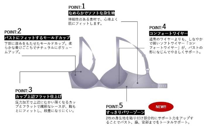 また、部分的にサポート力を高めた「すっきりパワーゾーン」を新搭載。バストや脇、背中までをなめらかに整え、どの角度から見てもスムースなボディラインを演出します。