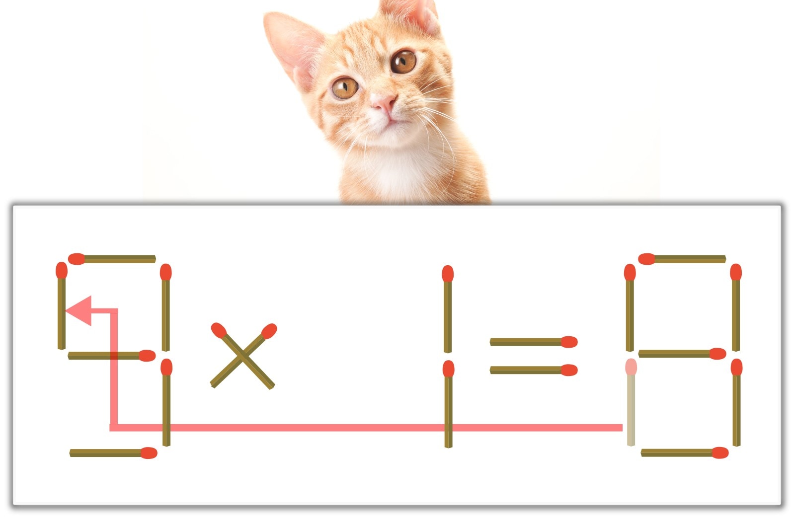 「8」のマッチ棒を1本、左にスライドさせて「9」を作り、「9×1=9」にする。※解答は複数ある場合があります。