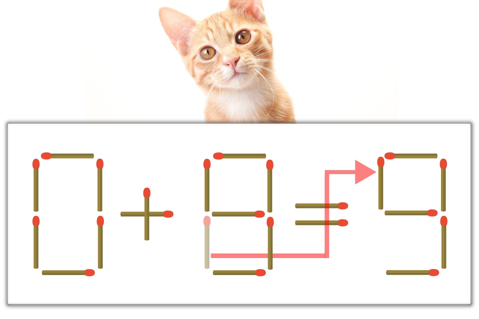 「8」のマッチ棒を1本、右にスライドさせて「9」を作り、「0+9=9」にする。※解答は複数ある場合があります。