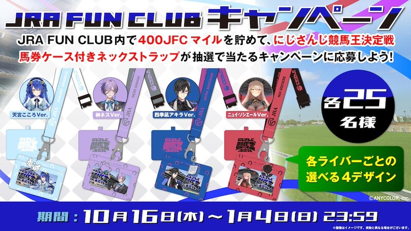 JRA FUN CLUBではにじさんじとのコラボアイテムがもらえるキャンペーンも開催!