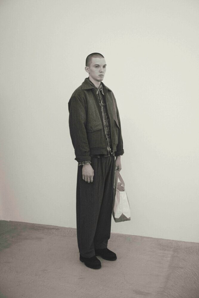 スーパー160’sという上質なウールに、モッサーと呼ばれる加工を施し、保温性だけでなく、しなやかさや滑らかさを獲得したスポーツジャケット。同素材のパンツとセットアップで展開。ウールスポーツジャケット8万6900円、デニムジャケット5万9400円、ウール開襟シャツ4万4000円、ウールイージーパンツ4万9500円/すべてゴールド(東洋エンタープライズTEL03-3632-2321)、シューズ5万7200円/パラブーツ(パラブーツ 青山店TEL03-5766-6688)、バッグ7590円/エル・エル・ビーン(ハリーアップTEL03-5378-8525)