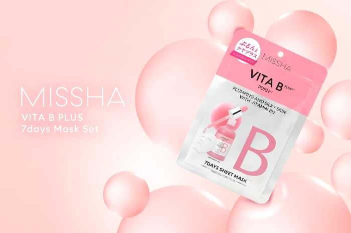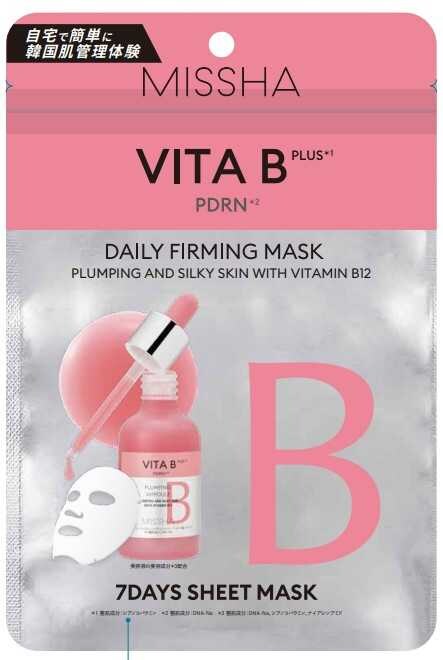 ピンク色の美容液が目を引く「ミシャ ビタビープラス 7days マスクセット」は、整肌成分ビタミンB12*(シアノコバラミン)とPDRN¹(DNA-Na)を配合。