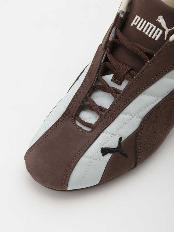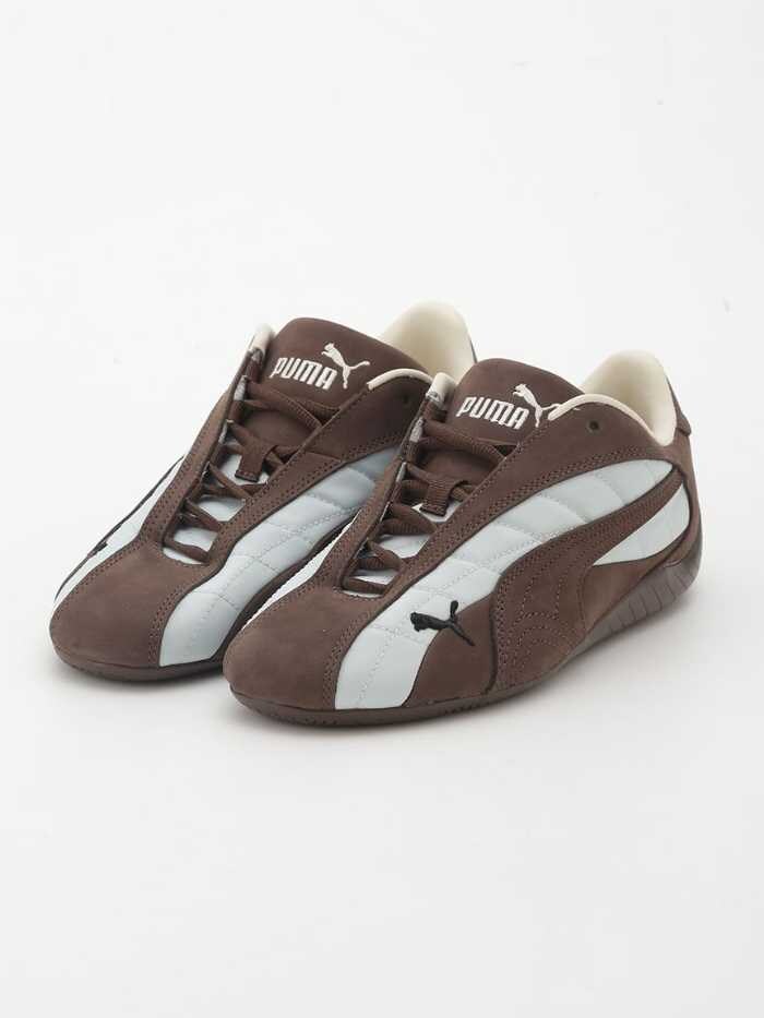 PUMA SPEEDCAT PLUSは、マットなスエードのブラウンに光沢感のあるブルーを掛け合わせたキーカラーで、洗練された印象を与えます。