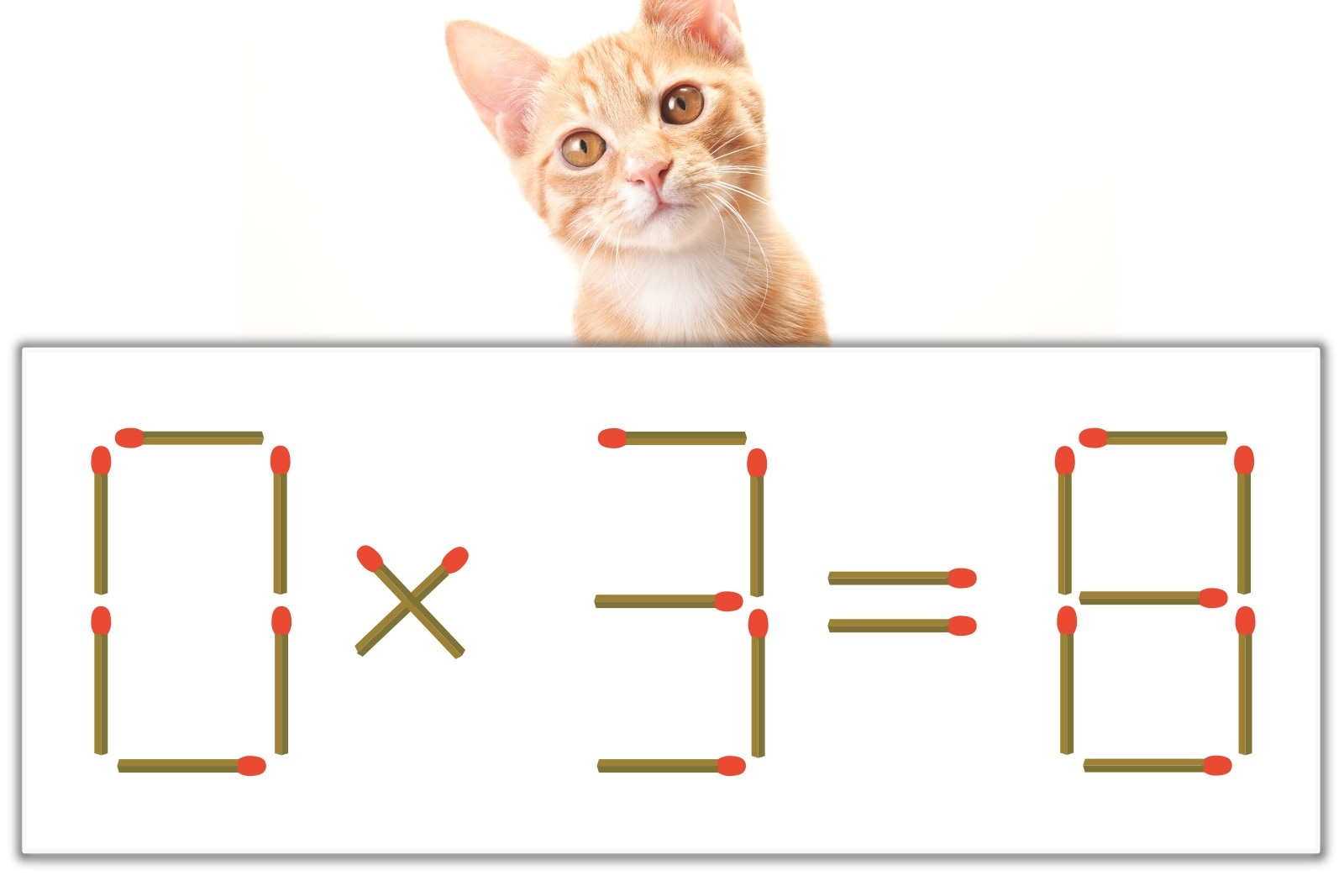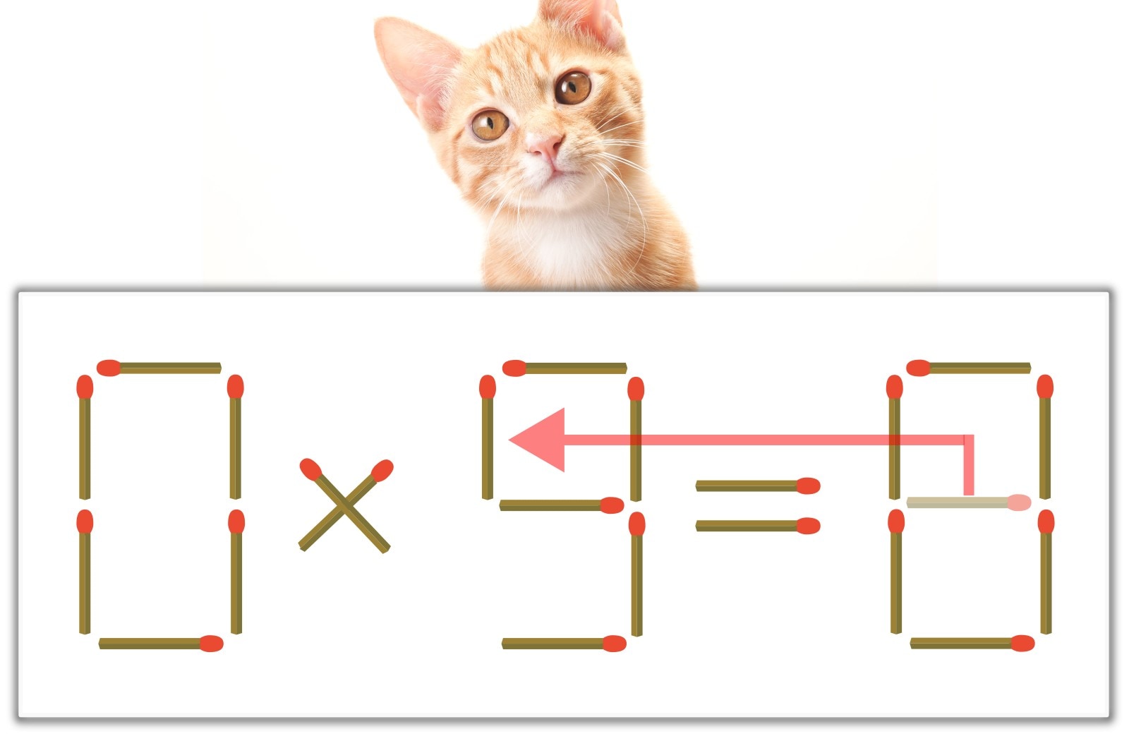 「8」のマッチ棒を1本、左にスライドさせて「9」を作り、「0×9=0」にする。※解答は複数ある場合があります。