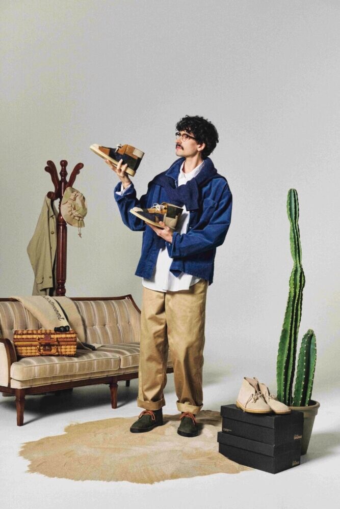 そしてこのたび、そんな[デザートブーツ]の記念すべき75周年を祝うモデルが登場。「ローデングリーン」というカラー復刻とパッチワーク仕様のふたつのモデルは、いずれもユニークで特別感を与えてくれつつも、どんなスタイルにも馴染みやすい。改めて[デザートブーツ]の完成されたデザインに、感服するばかりである。