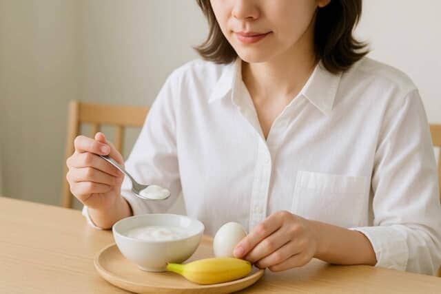 理想は、たんぱく質を含む軽めの朝食を摂ること。ヨーグルトやバナナ、ゆで卵など手軽なものでOK。朝に少しでもエネルギーを入れておくことで体温が上がり、1日の消費カロリーが自然とアップします。“食べないより、少しでも食べる”が代謝アップのコツです。