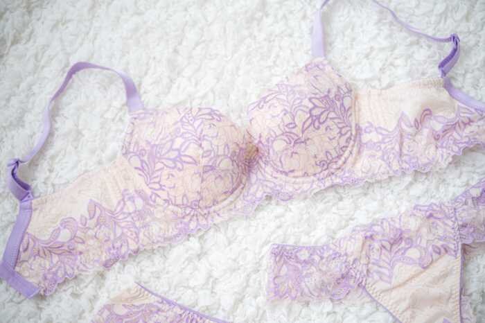 全62サイズ展開で、C65〜M90まで幅広く対応。新色パープルはクリーム色の生地に紫レースを重ね、柔らかで上品な印象。