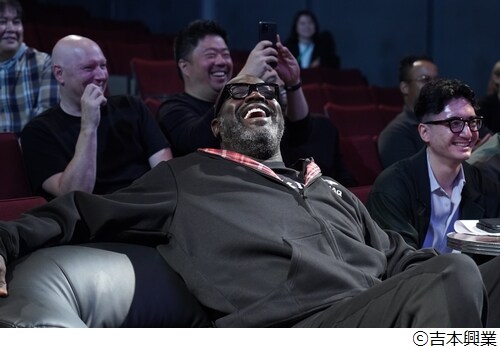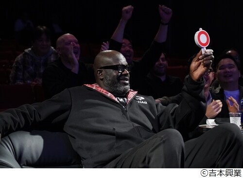 その後、劇場が用意した“特別専用シート”にシャックが着席すると、チャド・マレーンによる日英バイリンガルの司会で「よしもとスペシャル・コメディショー」が開演。シャックは「○(良い)」と「×(良くない)」の札を手に、とにかく明るい安村、いぬ、ウエスP、ぼよんぼよんらのネタを観賞した。